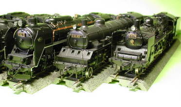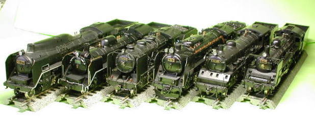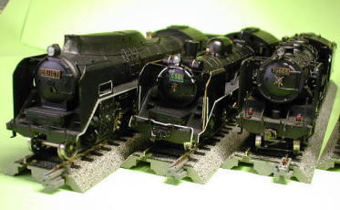 こちらは天賞堂。左からC62−2、C53、C57−1次。C53は数あるSLの中で一番好きなSLです。前面の滑り台(!?)がかっこいいと思いません?C62は我が家で唯一のTPE装備車です。