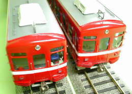 なんと言ってもこの顔つき、大阪市交2000系、京王6000系等とともに本当に愛嬌のある顔つきです。今回最も苦労したのがテールライトレンズでした。プラ板から切り出しましたが、まちの無いところへはめ込むのは至難の業でした。('03,10,1) |