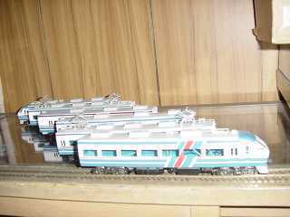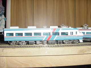 1/80で新塗装のAE車を見たのはこれが初めてです。色付のアクリルを利用した窓ガラスが効果的ですね。ところで、スカイライナーといえばこの型というイメージを持っているのは私の年代だけでしょうか・・・? |