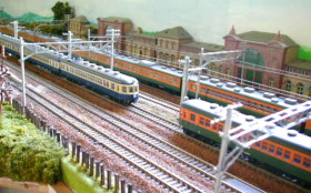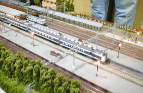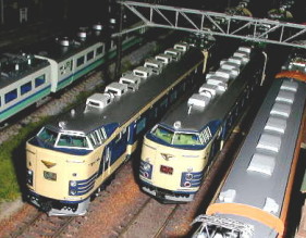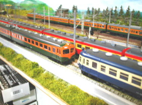 早速車両を並べました。長編成も全く問題なし。手前の旧国はHPでお馴染みの私の醜作。奥はTOMIX11連です。 |